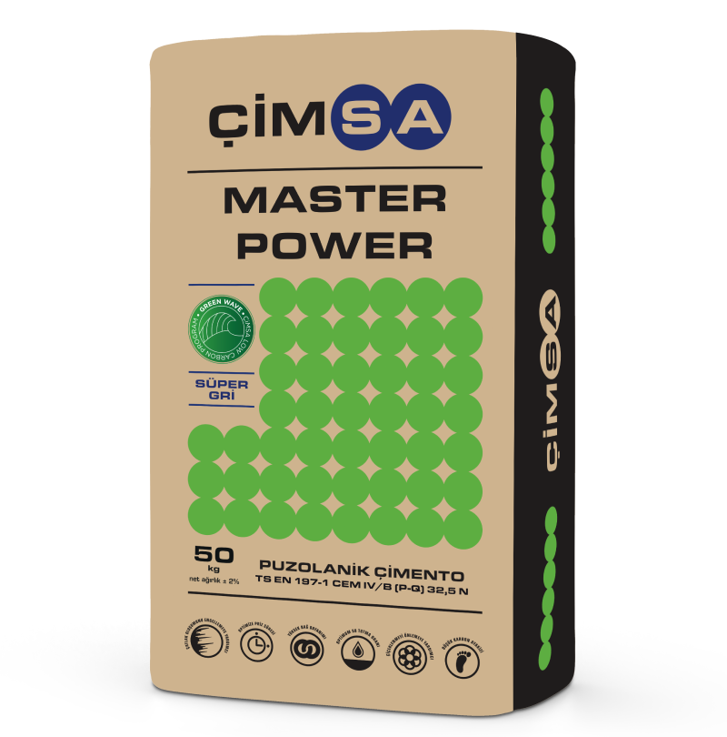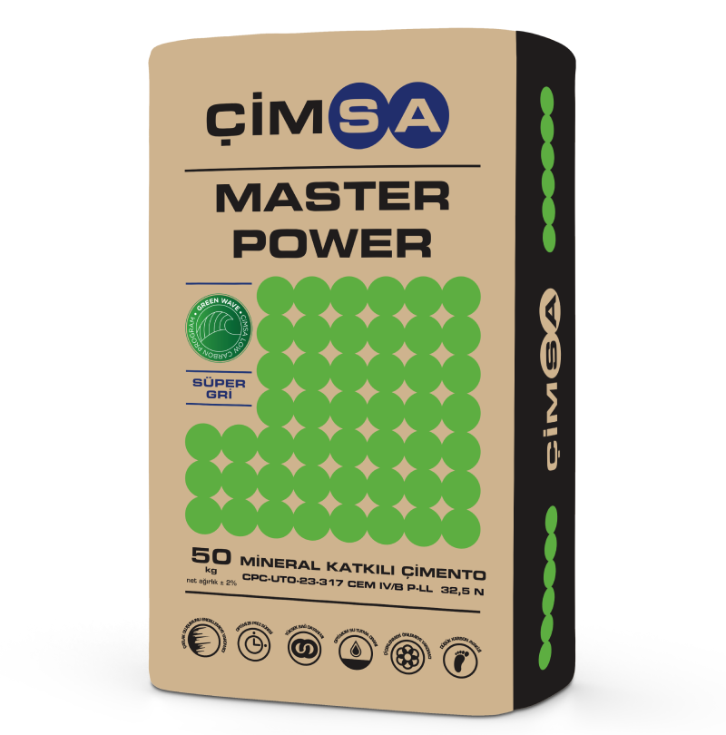 Çimsa Master Power çimentoları, harç, sıva, şap, kaplama ve yalıtım gibi bina uygulamalarında genel amaçlı kullanım için tasarlanmıştır. Yapı kireçleri ve akışkanlaştırıcı katkılarla uyumlu yapısı sayesinde kolay işlenebilirlik, tutarlılık, estetik bitiş ve dayanıklılık sağlar. Ayrıca krom (VI) düzenlemelerine uygunluğu ile temas halinde alerjik dermatit riskini azaltarak güvenli kullanım sunar.