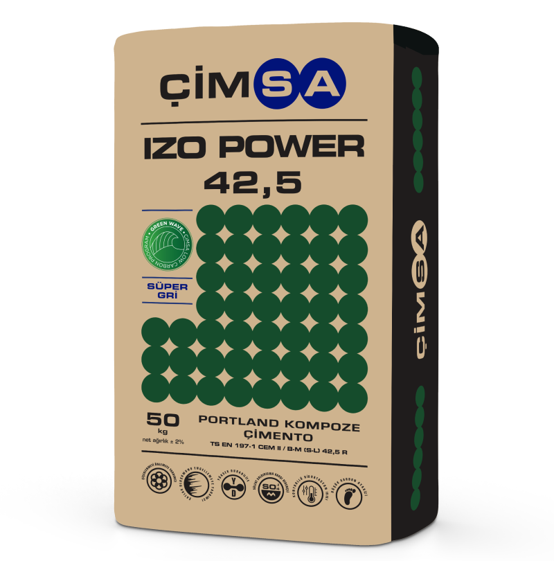 Çimsa Izo Power 42,5, Rapid 42,5 ve Ecofort; hazır beton üretiminde dayanım, verimlilik, dayanıklılık ve çevresel performans sunar. Izo Power 42,5, düşük hidratasyon ısısı sayesinde sıcak hava ve kütle beton uygulamalarında güvenilir sonuçlar verirken, betondaki mikro gözenekleri azaltarak geçirimsizlik ve uzun süreli dayanıklılık sağlar. Rapid 42,5, yüksek erken dayanımıyla, kalıp alma süresini kısaltır ve üretim hızını artırır. Ecofort ise yüksek fırın cürufu içeriğiyle çevresel etkilere karşı direnç sağlar ve hazır beton tasarımında kullanım için ideal bir alternatiftir.